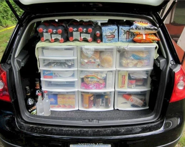 It’s time to use those plastic drawers that you have lying around your house, rather than cramming everything into the trunk. Place them in the trunk, and then fill them up with all the things you need. This is one of the fastest camping hacks available.