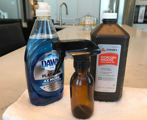 You can make a powerful laundry detergent by mixing one part dish soap with two parts hydrogen peroxide and one part of baking soda. You can cover the stain, scrub it gently with a soft toothbrush, then wash your clothes as usual.