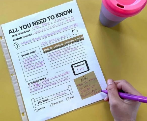 This is where a reusable plan for babysitters comes in. This is one of the most effective baby hacks to make sure nothing gets missed. You can fill out all the information you need to before you leave. Include any information that a babysitter may need, such as emergency contacts, bedtimes and when you will be returning.