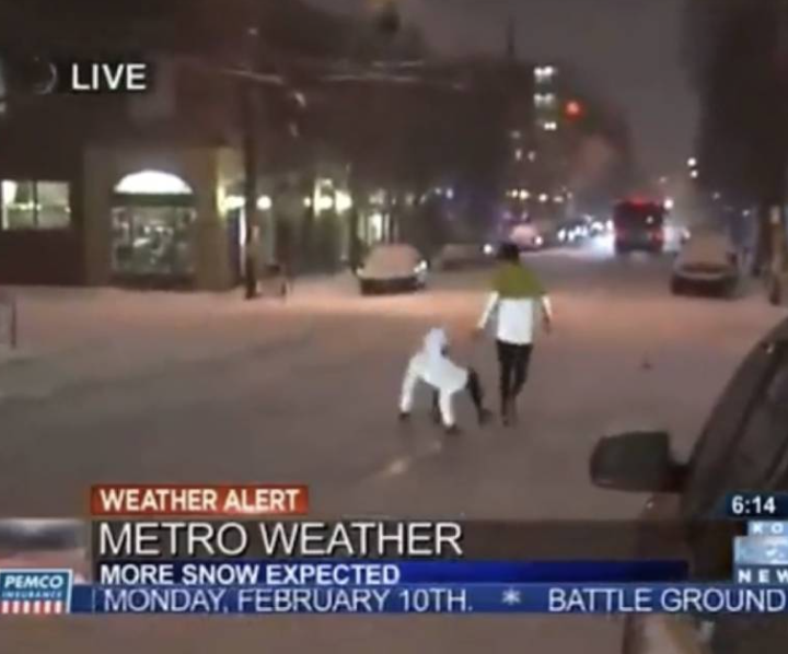 This hilarious blooper shows a woman named Chelsea being interviewed on the topic of running in snow. She declared confidently that the snow was “perfect for running”, and that “your feet don’t get soaked.” But as she ran away from her interviewer, Chelsea slipped and fell.