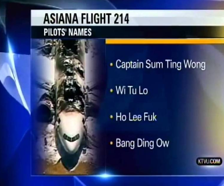 95. KTVU reports racist names after Asiana flight crash